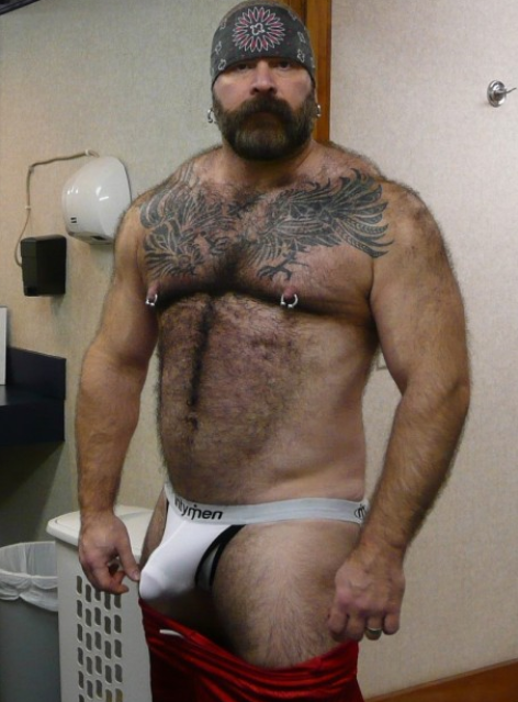 Yet by the same token guys like this really turn me on as well. I have no problem with body hair on a guy. If anything I like it more because it's more friction and tactile sensation. Like most guys I do like a guy with a tattoo. And of course that pierced nipples are hot. And he's even wearing a jock. To be honest I can pass on the earrings. Never been a fan of them on guys.